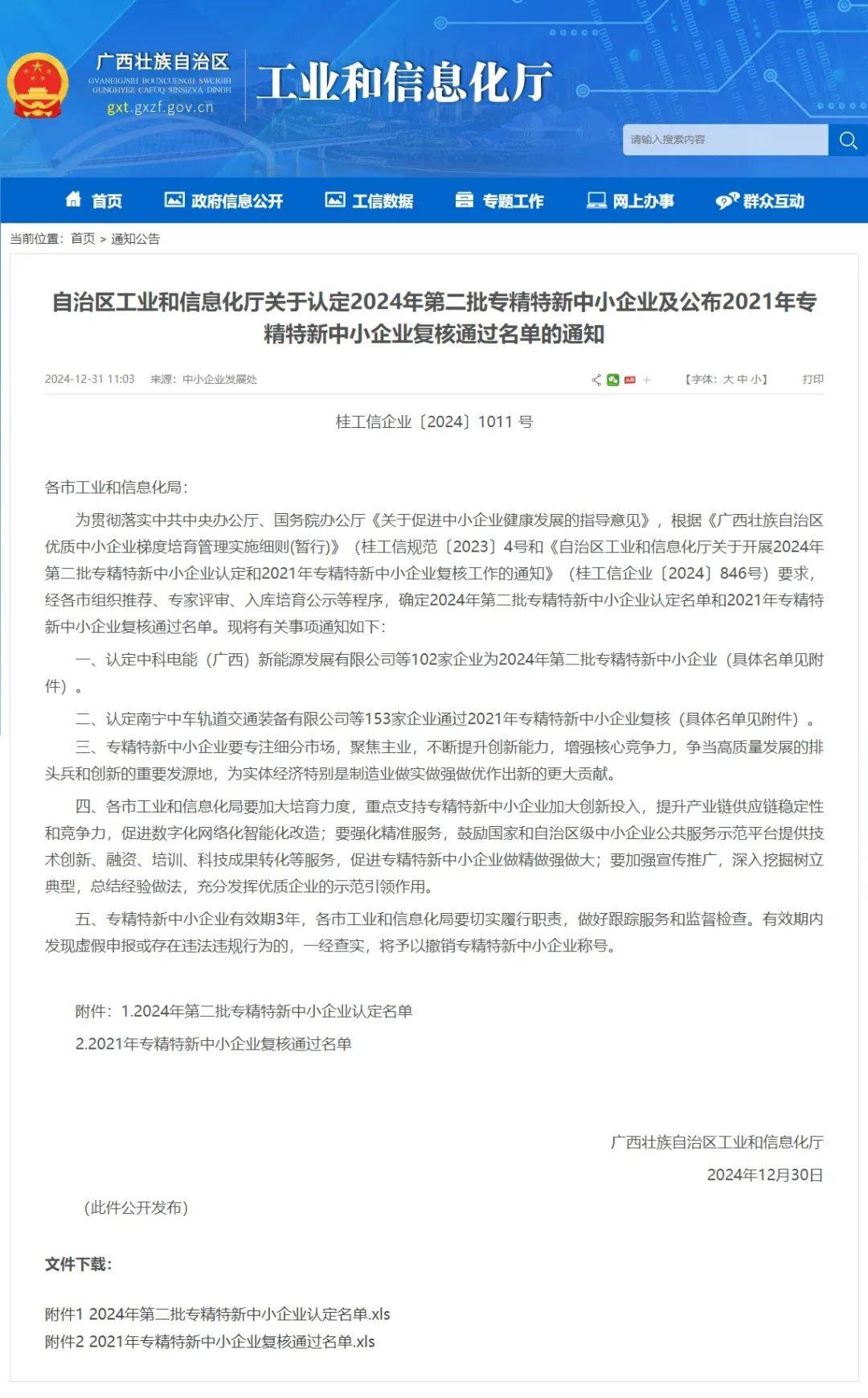 廣西工業(yè)和信息化廳官網(wǎng)截圖