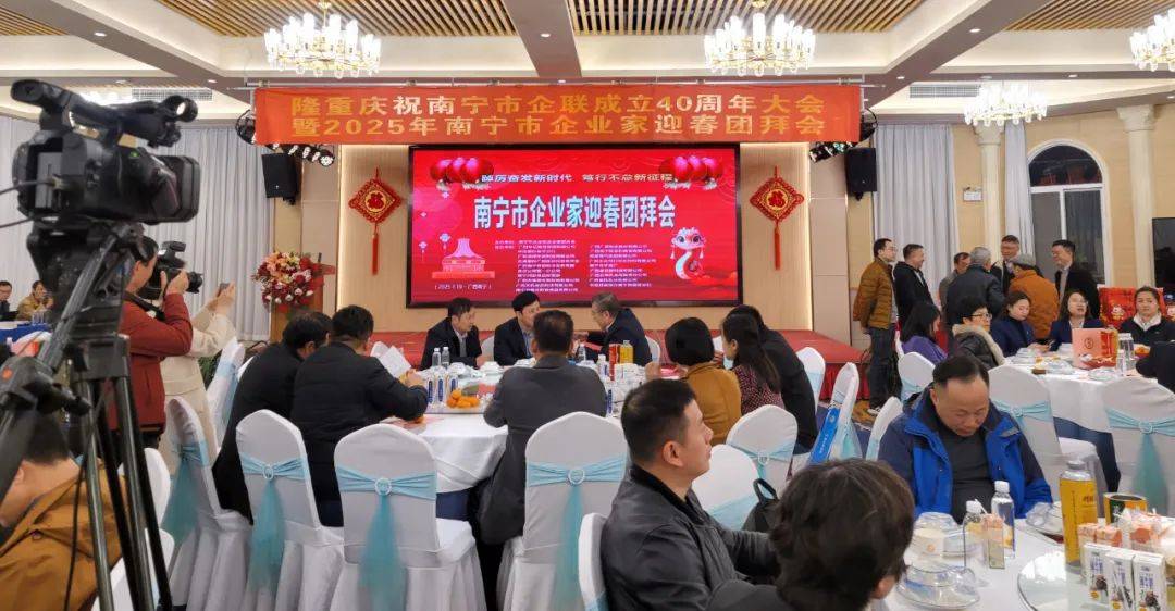 新春又至紅梅開,年景豐盛千禧來。2025年1月10日,“踔厲奮發(fā)新時(shí)代 篤行不怠新征程”南寧市企聯(lián)2025年會(huì)員代表大會(huì)、南寧市企聯(lián)成立40周年慶典大會(huì)暨企業(yè)家迎春團(tuán)拜會(huì)在花漾年華度假酒店舉行。