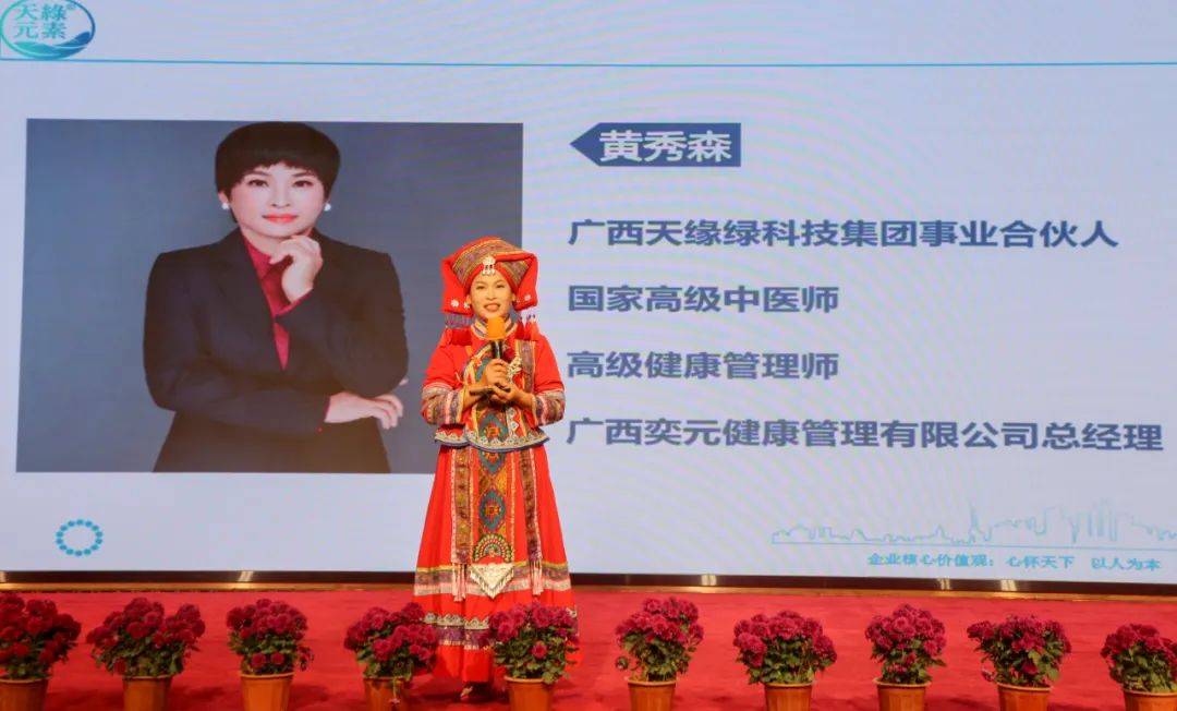緊接著,國家高級(jí)中醫(yī)師黃秀森女士為現(xiàn)場(chǎng)朋友帶來了精彩的冬季養(yǎng)生知識(shí)與預(yù)防講座。她結(jié)合冬季氣候特點(diǎn),深入淺出地講解了如何在寒冷季節(jié)里科學(xué)養(yǎng)生、預(yù)防疾病,并講述天綠元素作用于細(xì)胞的三大特性,在提升人體免疫力、促進(jìn)健康方面的重要作用。贏得了在場(chǎng)觀眾的陣陣掌聲。
