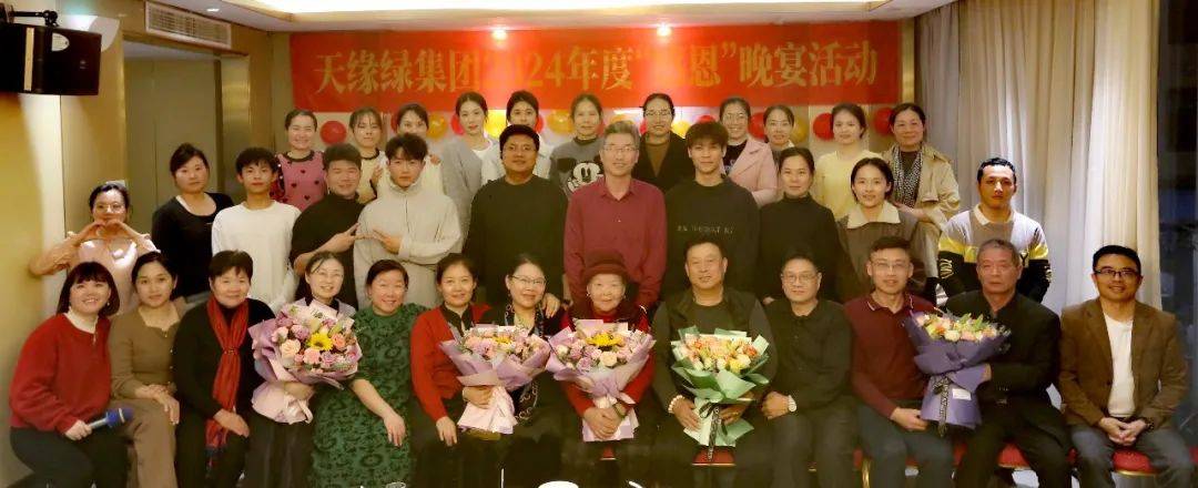 全體員工在歡聲笑語中合影留念,定格下了這難忘的時刻。此次感恩晚宴不僅是一次簡單的聚餐活動,更是一次共筑企業(yè)文化、強化團隊建設(shè)的盛會。它讓每一位員工都深刻感受到了來自集團的關(guān)懷與認(rèn)可,也激發(fā)了大家對未來的無限憧憬與期待。我們堅信,在全體員工的共同努力下,天緣綠集團的明天將更加美好!