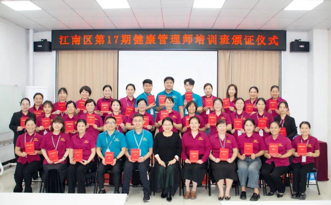 3月3日,江南區(qū)第17期健康管理師培訓班頒證儀式在天綠元素生活體驗中心溫馨舉行。42名學員參加考試,40人成功取得國家高級健康管理師證書,通過率高達95%。這場儀式不僅是對學員們努力的肯定,更是天緣綠集團在人才培養(yǎng)和踐行社會責任上的又一次見證。